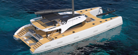 De son côté, l'équipe de Berret-Racoupeau a apporte ses connaissances et son expertise à ce projet. "La performance du cata était élevée sur la liste des priorités réclamées non seulement pour la vitesse pure mais également pour donner un plaisir de naviguer" explique l'architecte Olivier Racoupeau. Deux options de plan de navigation ont été développées pour répondre aux attentes des propriétaires potentiels. Alors que le propriétaire axé croisière préfère un mât fixe, le passionné de performance pourra choisir un plan de voile plus grand avec un mât rotatif..." complète Olivier Racoupeau.