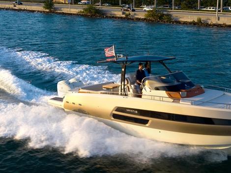 Invictus Yacht vient d'annoncer la sortie d'une version hors-bord de son modèle amiral, le GT370S. Il fait suite au GT280S, présenté l'année dernière au Cannes Yachting Festival. Cette configuration vise un nouveau type de clientèle, différente de celle qui choisit habituellement la version stern-drive, c'est à dire inboard. Le constructeur italien, qui produit aux alentours de 250-300 unités par an, souligne ici sa volonté de se se développer sur le marché américain, après ses débuts officiels au Miami Yacht Show en février dernier. En effet, sur le créneau des bateaux de moins de 12 mètres, les modèles hors-bord rencontrent un fort succès aux États-Unis et en particulier en Floride. En effet, les américains plébiscitent ce type de bateau pour les performances et les facilités d'entretien.