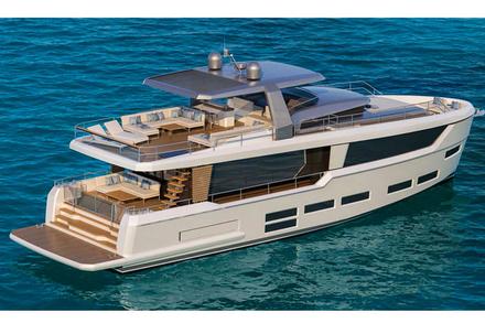 Fruits d’une collaboration entre Bénéteau, Massimo Gino (Nauta Design) et Amedeo Migali (MICAD), deux nouvelles unités du "Project E", dont l’une de plus de 20 mètres, verront bientôt le jour. Ces futurs motor-yachts se caractérisent par leur carène à déplacement, spécialement développée par MICAD dans le but d’améliorer leur autonomie et efficience, permettant ainsi aux propriétaires d’embarquer pour des voyages au long cours. Bois brossé, cuirs et textiles sophistiqués, le design intérieur/extérieur a été étudié dans le moindre détail par le cabinet expert en la matière, Nauta Design.