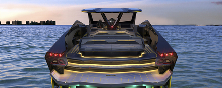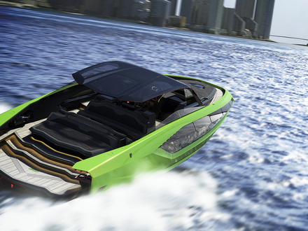 Avec sa silhouette hyper-sportive et son style avant-gardiste, le bateau à moteur ne devrait pas passer inaperçu. Sa coque et sa superstructure ont été développées par des ingénieurs navals spécialisés dans les sciences hydrodynamiques. Ils interprètent de manière contemporaine le coup de crayon de Marcello Gandini, pour la Miura et la Countach des années 60 et 70. "Le hard top est inspiré des roadsters Lamborghini : il offre une protection contre le soleil et le vent tout en garantissant de bonnes performances aérodynamique. Les feux avant sont un hommage au concept-car Lamborghini Terzo Millennio et à la Sián FKP 37, qui se distinguent tous deux par leurs feux avant en forme de Y" explique l'équipe de Sea Group.