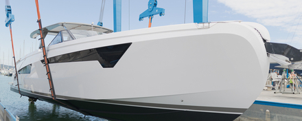 Le nouveau Franchini MIA 63, un motoryacht conçu par Massimo Franchini et construit par le chantier naval du même nom vient d'être mis à l'eau, près d'Ancona (Italie) sur la côte Adriatique. Le bateau à moteur a été baptisé mi-juin au champagne par Mia Franchini (notre photo), fille de Massimo et à l'origine de ce projet innovant. Le bateau à moteur affiche un profil moderne avec ses lignes tendues et sa proue unique qui intègre une ancre rétractable. Une sorte de runabout ou un speedster ? Sa coque a été dessinée par le studio Naos de Roberto Prever.
