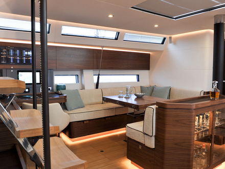 Depuis plusieurs générations de voiliers, nous connaissions la légendaire fonctionnalité des modèles de la marque créée en 1962. Maintenant que l’assistance des manœuvres et tout l’équipement domestique – et il est exhaustif – sont électriques et hydrauliques, nous sommes en droit de nous demander si cet arsenal ne peut souffrir de faiblesses ? Il suffit de soulever le panneau du tableau de commande pour réaliser le sérieux du montage des circuits. Tout est doublé et si jamais un problème surgit, les plans de montage sont suffisamment précis pour intervenir, même à distance. Être autonome en toutes circonstances avec des solutions simples a été le leitmotiv du chantier depuis ses débuts, mais faire perdurer cette fiabilité sur un navire disposant du même appareillage qu’un appartement de grand standing est le résultat d’un travail rigoureux et passionné. Car les équipes du chantier n’ont de cesse de faire évoluer la technique, en concertation avec les clients, afin de rationaliser la débauche d’énergie nécessaire à ce cahier des charges. Un désalinisateur de 240 l/h, une bordure de GV ou une passerelle hydraulique, de multiples réfrigérateurs réclament une fourniture énergétique sans faille et une installation aussi méticuleuse qu’astucieuse. Pour ne citer que cela, la récupération des eaux de cales et des eaux grises s’effectue dans un boîtier central facilement accessible et nettoyable.