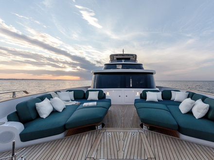 A bord du yacht, la pièce maîtresse est le salon qui offre une vue sur la mer en tout point et est inondé de lumière naturelle. La table à manger peut être disposée dans le sens de la longueur et l'espace de vie est basé sur le concept de la géométrie organique, avec des canapés de différentes formes qui offrent différentes profondeurs. Toujours sur le pont principal, l'escalier est revêtu de miroirs pour le "dématérialiser" et, en réfléchissant la lumière, la vue sur la mer est devenue une partie intérieure du yacht ! "La lumière artificielle est un élément clé, avec un système d'éclairage conçu pour créer une ambiance douce et chaleureuse" explique Azimut Yachts.