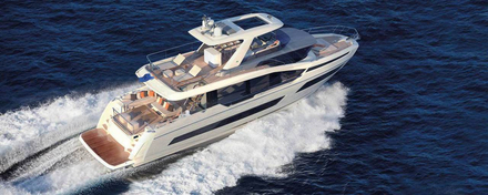 Une gamme au-dessus, deux modèles sont mis sur le devant de la scène (de l'écran) : le Grand Trawler 62, qui sortira officiellement au printemps prochain et la Prestige X70, annoncée au précédent Cannes Yachting Festival et premier modèle de la gamme X-Line chez Prestige. Le Grand Trawler 62 se destine aux longs voyages et se caractérise par de grands espaces, intérieurs comme extérieurs, une grande possibilité de personnalisation et le choix entre 3 ou 4 cabines, ainsi qu'un quartier équipage. Quant à la Prestige X70, c'est la réelle nouveauté de présentation. Et là aussi, le confort à bord et le bien-être sont les caractéristiques principales pour cette vedette de 70 pieds présentée comme "une île privée". Une qualification qui en dit long sur la volonté de la marque et du groupe : vivre sur l'eau comme à la maison, "real estate on the water". Chaque modèle est pensé et réalisé comme un mini-superyacht.