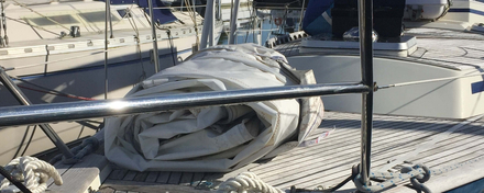 En premier, sur un voilier, les voiles seront enlevées et vérifiées afin de contrôler s’il y a des points à revoir : couture, bande UV, petite déchirure. Si c’est le cas, il est prudent de les amener chez le voilier. En arrière-saison et pendant l’hiver, ils sont moins débordés et peuvent sans problèmes effectuer les petits travaux. S’il n’y a aucune réparation à faire, l’idéal est de pouvoir les rincer à l’eau douce, de bien les laisser sécher et de les ranger dans leur sac.