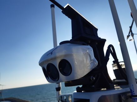 Il dispose d’une centrale inertielle qui lui permet de savoir dans quelle direction et avec quelle accélération le bateau se déplace. Pour stabiliser l’image, il utilise la détection d’horizon basée sur l’IA. Son emplacement en tête de mât lui permet de voir au-dessus des crêtes des vagues.