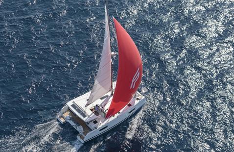 Catamaran de luxe par excellence, ce nouveau voilier flagship du chantier offre une sensation d’espace sans limite. Le salon s’ouvre pleinement sur l’extérieur, d’une part avec sa grande baie qui communique avec le cockpit arrière, et d’autre part avec son ouverture sur le cockpit avant.