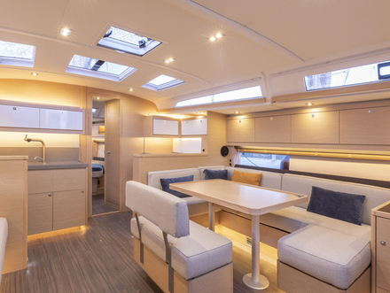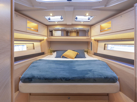 Il offre un volume impressionnant qui profite principalement à la cabine propriétaire ou à la cabine double avant pour sa version charter. Il peut également être équipé d'une cabine supplémentaire pour le skipper.