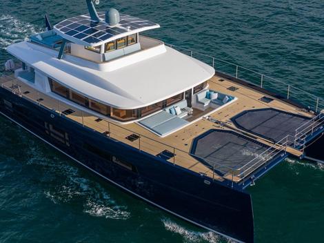 Au-delà d’une vue ininterrompue sur la mer, le catamaran présente une stabilité naturelle, aussi bien en mer qu’au mouillage, permettant de vivre confortablement et sereinement à bord. La surface supplémentaire qu’offre le pont complète les espaces de vie. Le pont avant du Long Island Power 78’ offre un espace lounge ainsi qu’un bassin d’eau de mer, permettant une baignade sécurisée. Innovant et relaxant, il est directement connecté au salon du carré, créant une continuité entre l’intérieur et l’extérieur du navire. Cette combinaison apporte une circulation fluide à bord. Les nombreux espaces peuvent être appréciés de différentes façons, proposant des moments de détente paisible ou des moments en famille ou entre amis.
