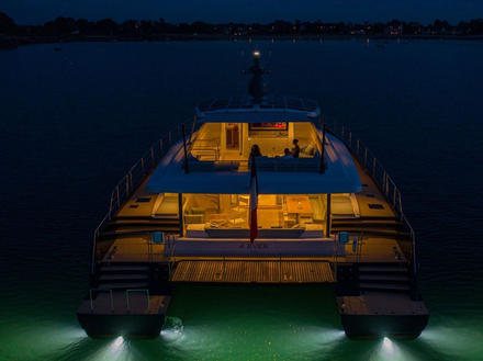 La coque aluminium et les superstructures en composite ont été pensées pour voyager à travers les mers et les océans. Ce yacht à déplacement rapide évolue à une vitesse de croisière de 12 nœuds, avec une vitesse maximale de 18 nœuds. Aussi confortable en navigation côtière qu'en navigation hauturière, 4Ever affiche une autonomie transatlantique de 3 400 milles nautiques à 8 nœuds.