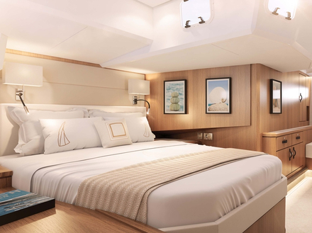 "C'est un vrai bateau de marin", dit Briand. "Il convient parfaitement à presque tous les types de navigation, de la croisière rapide en haute mer à la balade dans la baie - un bateau pour la Méditerranée et la Baltique. Le volume intérieur est la maison du propriétaire sur l'eau, tandis que ses espaces de vie extérieurs sont inégalés par la concurrence. Il est plus agréable à naviguer, plus rapide et plus confortable à la voile et au moteur que n'importe quel catamaran disponible pour le même budget".