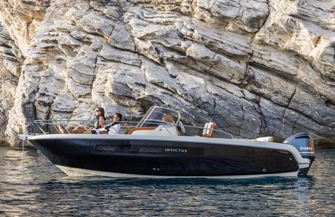 La nature sportive de l'Invictus Capoforte SX200 est soulignée par le moteur hors-bord de 150 cv qui permet au bateau d'atteindre facilement plus de 30 nœuds, alors que 20 nœuds est la meilleure option pour une croisière économe en carburant.