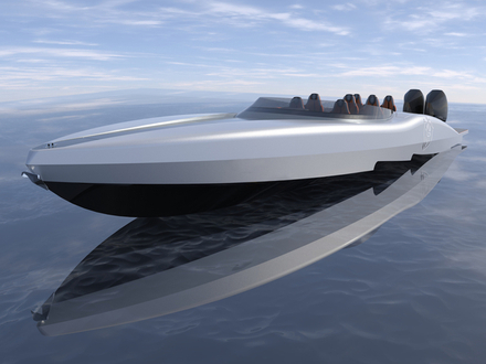 Pas encore présenté, le premier 411 Carbon Series a été vendu à un client français, ancien propriétaire de bateaux offshore rapides à moteur inboard, désireux d'être rapide sans les problèmes de fiabilité et les coûts d'exploitation typiques des inboards.