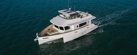 "Sur toute notre gamme voile on enregistrait depuis toujours des consommations au moteur très intéressantes par rapport à des monocoques ou même des catamarans de même taille. Les coques des trimarans ont une résistance à l’avancement très faible, elles traînent très peu d’eau. Mais le vrai déclic c’est notre architecte naval, Bernard Nivelt, qui est venu nous voir en nous proposant de faire un trimaran à moteur, convaincu qu’il y aurait un delta de consommation très favorable. Pour la grande croisière, le trimaran offre aussi des avantages importants en comportement à la mer, en sécurité par mer formée voire par mer dure, moins de roulis au mouillage, toutes conditions dans lesquelles les flotteurs latéraux stabilisent le bateau. En y associant notre concept d’aménagements de plein pied, on se retrouve avec des surfaces habitables vraiment très séduisantes. Au-delà de cette approche architecturale, nous avons réfléchi en tant que chantier, et là, il n’a échappé à personne que la voile est une « niche » sur le marché de la plaisance dominé à 80% par le moteur. Donc cela faisait du sens d’être présent sur ce secteur. Qui plus est, nous avons aussi été poussés quelque peu par le marché car, à plusieurs reprises, nous avons eu des clients qui auraient bien enlevé le mât ! Souvent pour des questions d’âge, après avoir fait beaucoup de voile dans leur vie."