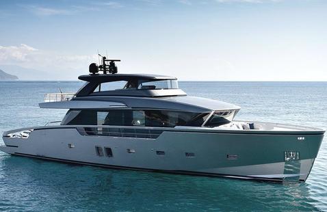 Les lignes extérieures réalisées par BG Design Firm, le même studio qui se trouve derrière le nouvel OTAM 70 HT, s'inspirent des mondes aéronautique et automobile pour refléter l'ADN racé de la marque. Parmi les détails du design, citons les évents d'aération chromés dans le tableau arrière et l'entrée d'air sur le dessus du toit rigide.