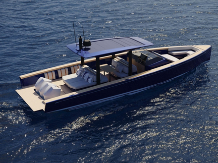 Nautor’s Swan présente un concept de yacht à moteur polyvalent capable de répondre aux besoins de ses clients et d’atteindre une vitesse de pointe de 55 noeuds. L’une de ses caractéristiques est une plate-forme au design visuellement simple, de plate-forme fixe se transformant en plate-forme de baignade ou en passerelle. Une autre particularité de la conception est l’ajout de piliers de toit télescopiques optionnels et de panneaux de verre mobiles pour créer une cabine convertible. Il est équipé de trois moteurs hors-bord de 225 à 350 ch.