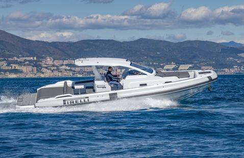 L'ensemble de propulsion standard du 43wallytender X comprend trois Mercury Verados de 300 ch qui atteignent une vitesse maximale de 40 nœuds, ou les propriétaires peuvent opter pour un ensemble encore plus rapide qui comprend trois Mercury Verados de 450 R pour une vitesse maximale de 50 nœuds. Pour une superbe manœuvrabilité et une croisière facile, les commandes par joystick, le positionnement dynamique et le pilote automatique sont de série. Développé par Wally et le département d'ingénierie du groupe Ferretti, le bateau est construit en matériaux composites avancés avec de la fibre de carbone dans les installations de Wally à Forlì, avec une courbe en V profond de 21 degrés qui assure une tenue de mer exceptionnelle.