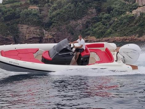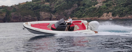 Un semi-rigide luxueux destiné à des amateurs de pilotage et de sensations fortes, et ce sans compromettre un usage plaisance entre amis ou en famille, car la conception de ce semi-rigide a toujours laissé la priorité à la sécurité et au confort.