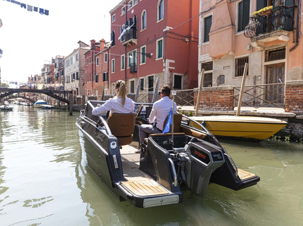 Les moteurs, strictement hors-bord, sont confiés à deux spécialistes de la propulsion électrique : le Torqeedo Cruise de 4 à 10 kW (environ l'équivalent de 20 ch), ou les nouveaux Mag Power 18.0 et 30.0, avec respectivement 18 et 30 kW. Le premier (avec une puissance d'environ 40 ch) garantit la vitesse déjà mentionnée de 22 nœuds, le second une vitesse de pointe de 16 nœuds.
