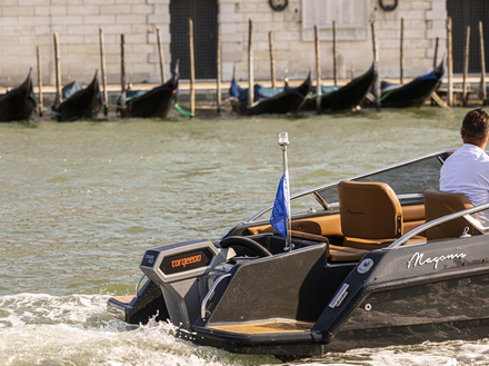 Le tirant d'eau de seulement 0,30 m vous permet de vous aventurer presque jusqu'au rivage dans un silence total, garanti par la propulsion électrique avec 22 nœuds de vitesse maximale et une autonomie de 12 heures en vitesse de croisière. La cylindrée de 335 kg met en évidence la construction par infusion sous vide de la technologie exclusive Light X Pro développée par l'équipe d'ingénieurs et de designers de Magonis.