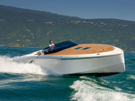 Le dernier modèle du chantier autrichien perpétue l'ADN Frauscher avec une étrave droite et des prises d'air latérales. Un day-boat de 12 mètres qui offre deux bains de soleil séparés à l'arrière avec un passage central vers le cockpit, sans oublier un immense pont en teck vers la proue.