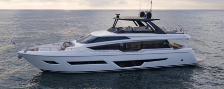 Le Ferretti Yachts 780 sera à découvrir au Yachting de Cannes en septembre prochain, aux côtés d'une foule d'autres modèles du groupe.