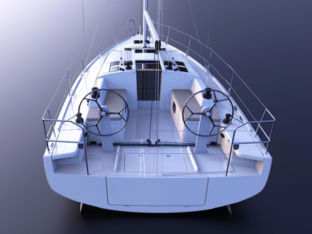 Dans la configuration de course, le cockpit large et moderne offre la possibilité de naviguer efficacement avec un équipage complet ou en équipage réduit, le barreur et les régleurs trouvant facilement leur position pour un maximum de performance. Dans cette configuration, la table et les coffres sont retirés, agrandissant ainsi l’espace de manœuvre. Les barres à roue légèrement surélevées par rapport à la moyenne permettent au barreur de s’avancer vers le winch de grand-voile lorsqu’il navigue en équipage réduit. Les régleurs de grand-voile et de voiles d’avant travaillent efficacement grâce à la position des winches, ils peuvent aussi ramener les écoutes au vent. Le tout servi par un accastillage fourni par Harken, Spinlock, Ronstan et Antal.