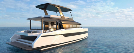 Un premier Whisper-Yachts de 50 pieds est entièrement développé et au stade de la commercialisation (livraison des premiers modèles pour la saison 2023). La propulsion et la gestion de l’énergie sont confiées au système Deep Blue de Torqeedo. Deux moteurs de 100 kW sur lignes d’arbres sont alimentés par un pack de batteries de 200 kWh de type BMW. Ils comportent une possibilité de « booster » la puissance à 2 X 120 kW permettant d’atteindre 18 nœuds sur une courte période. La fourniture d’énergie est assurée par 30 m² de panneaux solaires produisant 6 kWp, une connexion à quai de 13,2 kW et d’un générateur d’appoint de 25 kW.