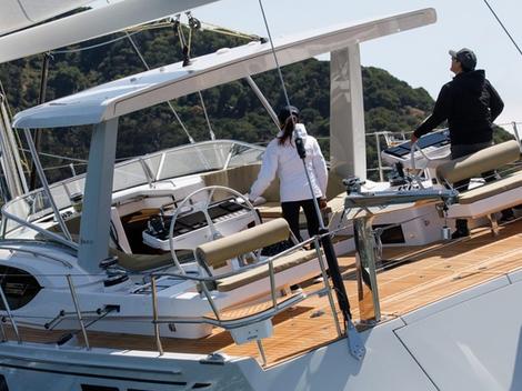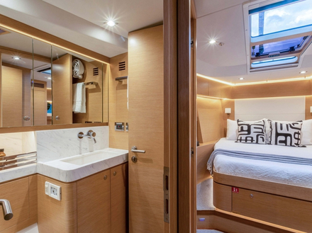En prolongeant le maître-bau loin vers l’arrière, Bill Dixon a donné de la puissance au bateau et beaucoup de volume aux aménagements. Cela est particulièrement visible dans la longue cuisine en coursive, qui sur l’arrière-tribord est vraiment impressionnante. Cela se poursuit dans la cabine arrière, une master-suite occupant toute la largeur du bateau. Le carré se situant au cœur du bateau bénéficie lui aussi bien entendu de l’importante largeur de 5.2m. Surélevé il offre une vue sur l’extérieur vraiment séduisante. Dans sa version trois cabines, la plus vendue, la cabine en coursive peut servir de rangement, tandis que les invités investiront la très belle cabine avant. Partout la qualité et le savoir-faire de Hylas Yachts est évidente. Cet Hylas 57 est une unité correspondant bien à un couple de navigateurs souhaitant vivre confortablement et recevoir occasionnellement la visite d'amis ou de la famille, lors d’un tour du monde. Et comme chez Queen Long Marine, le client est roi, il nous tarde de découvrir le prochain H57, dont l’intérieur a été dessiné dans un tout autre style par le studio Italien Hot Lab !