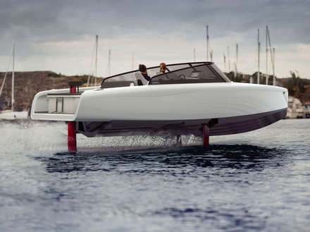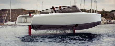 Le Candela C-8, de fabrication suédoise, vole sur l'eau grâce à des hydrofoils guidés par ordinateur. Se déplaçant au-dessus des vagues à des vitesses allant jusqu'à 30 nœuds, le C-8 est cinq fois plus efficace que les bateaux électriques conventionnels, ce qui lui permet de disposer d'une grande autonomie en mode tout électrique à grande vitesse. Les autres avantages sont une navigation nettement plus douce et silencieuse, ainsi que des coûts d'exploitation réduits de 95 % par rapport aux bateaux à moteur à combustion.