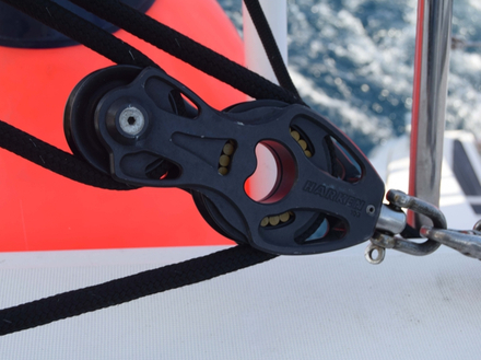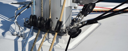 Le textile est de plus en plus présent en accastillage (manilles, mousquetons, loop, etc.) et depuis peu sur les poulies. Ces dernières n’ont pas une utilisation universelle, mais elles sont bien adaptées aux applications sous fortes charges et, par rapport aux modèles traditionnels, elles sont plus légères et moins encombrantes. Elles sont recommandées pour les renvois en pied de mât, d’écoutes ou encore pour la bordure de grand-voile.