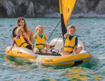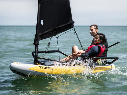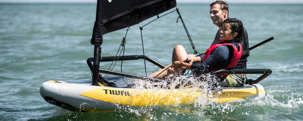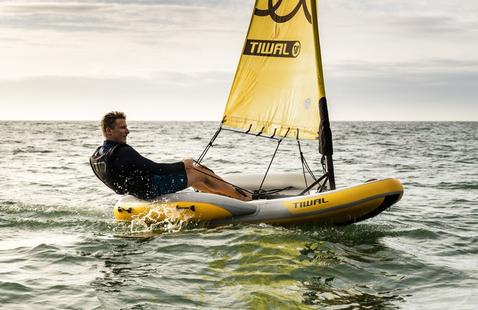Tiwal vient tout juste de lancer le Tiwal 2L, le plus grand de la gamme. Ce voilier familial de 47kg peut accueillir 2 adultes ou un adulte et deux enfants. Rangé dans deux sacs, il s'emporte partout dans le coffre de la voiture, dans un bateau, ou un avion !