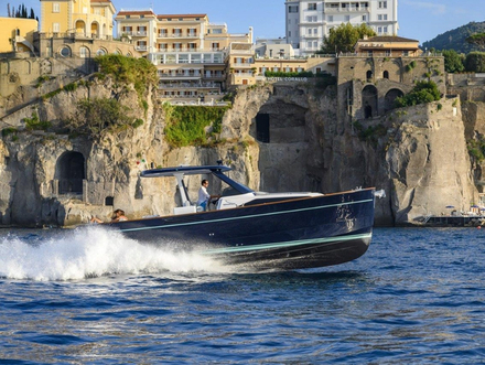 Dessiné par Marco Casali pour les lignes de pont et par Umberto Tagliavini de Marine Design pour la coque avec le soutien de Cataldo Aprea, l'emblématique Gozzo 35 se caractérise par son âme méditerranéenne inimitable. Ses lignes sobres et élégantes s'inscrivent dans la tradition historique des Gozzi sorrentins, produits par la famille Aprea depuis les années 1960 et désormais connus dans le monde entier.