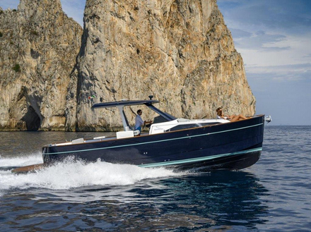 Le bien-aimé Gozzo 35 est devenu le best-seller de la marque Apreamare, avec plus de 30 unités vendues depuis son lancement officiel il y a un an et demi. Marco Casali de Too Design a dessiné les lignes extérieures et Umberto Tagliavini de Marine Design a conçu la géométrie de la coque avec le soutien de Cataldo Aprea. L'emblématique Gozzo 35 se caractérise par son âme méditerranéenne inimitable et ses lignes sobres et élégantes, issues de la tradition historique du Gozzo sorrentin, produit par la famille Aprea depuis 1849.