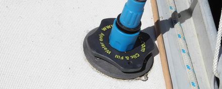 Clic & Fill est un adaptateur qui vient se visser sur le nable de remplissage. A ce jour, il ne s’adapte qu’aux nables de 45/46 mm. La majorité des bateaux en sont équipés, mais, attention, certaines unités anciennes ont un diamètre différent soit plus petit soit plus grand et, dans ce cas, il ne peut pas s’adapter. Le connecteur universel type aquastop Gardena qui équipe le Clic & Fill peut recevoir le tuyau de remplissage. Une fois le tuyau branché, il suffit d’ouvrir l’eau sur la borne pour remplir le réservoir. Lorsque ce dernier est plein, l’eau s’écoule par son trop plein.