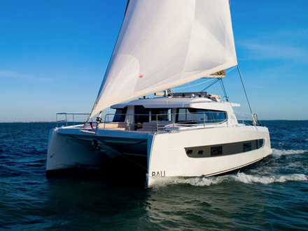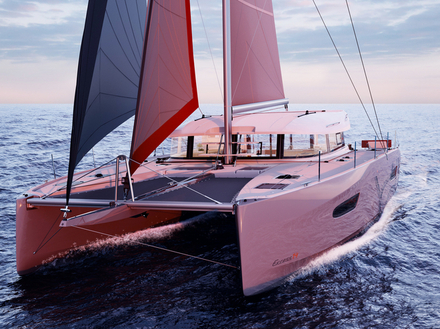 Le groupe dirigé par Olivier Poncin continue de décliner le concept initié en 2014 en occupant systématiquement chaque taille du marché. Le Bali 4.4 reprend donc toutes les caractéristiques qui ont fait le succès de ses cinq et bientôt six homologues. Le carré devient cockpit en ouvrant la fameuse porte « garage » et les baies vitrées latérales. Le pont avant rigide offre un espace de vie additionnel au mouillage, accessible directement depuis l’intérieur. Disponible en trois cabines avec la coque bâbord dédiée au propriétaire, il fera surtout le bonheur des flottes de location en version quatre cabines et quatre salles d’eau indépendantes.