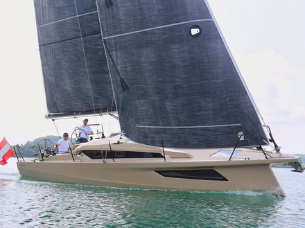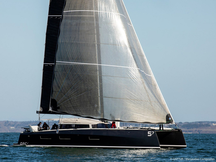 Le chantier lorientais Marsaudon Composites régale depuis des années, les amateurs d’excès de vitesse sous voile avec sa gamme TS de 42 et 50 pieds. Rebaptisée ORC, pour Ocean Rider Catamarans, elle accueille un navire amiral de 57 pieds, signé cette fois, Marc Lombard. Lignes sculptées, flotteurs effilés, nacelle courte et haute, poids plume (11 tonnes), tels sont les ingrédients pour naviguer plus vite que le vent. À l’intérieur, beaucoup d’espace, de la lumière et une finition laquée, très épurée, symbole d’excellence en matière de composite.