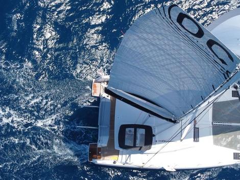 Premier élément de surprise, l’Ocean Class abandonne la traditionnelle séparation cockpit / carré, pour largement ouvrir ce dernier. Une évolution qui va dans le sens de l’histoire avec la standardisation des biminis rigides. Une fois la large baie coulissante arrière et les vitrages latéraux ouverts, difficile de faire la différence avec un cockpit classique. Une fois refermés, l’intérieur se fait protecteur et bénéficie d’un volume beaucoup plus important. Autre révolution pour Catana, l’abandon du double poste de barre arrière au profit d’un seul, plus avancé, et sur tribord. Un choix qui, à l’usage, se justifie pleinement, entre excellente vision sur les quatre points cardinaux du bateaux, à savoir les étraves et les jupes, sur les voiles, et des manœuvres centralisées, qui font beaucoup de sens en grande croisière où l’on est souvent en équipage réduit sur le pont.