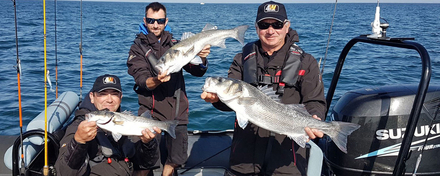 - 1 équipage Mercury Marine France avec Didier Courtois, le guide de pêche Jean Servant et Benjamin Duval,