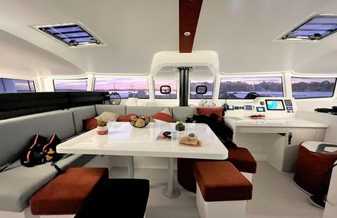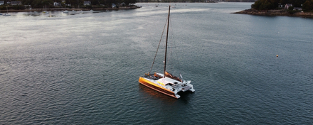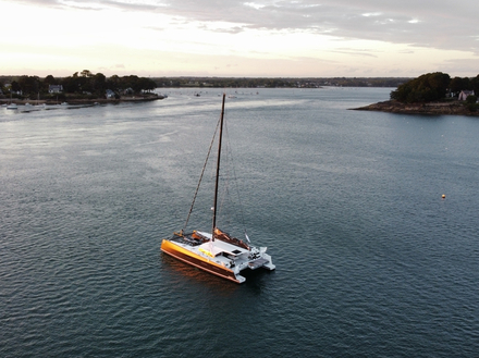 Sans nous lever aux aurores, après avoir dégusté un petit-déjeuner à l’accent British dans l’attente que le courant nous porte pour relever l’ancre, nous étions à Lorient en début d’après-midi. Si cinq heures de voiture ne nous attendaient pas, nous aurions encore pu déjeuner à Quiberon, Sauzon ou encore au mouillage des Grands Sables de Groix. Non seulement naviguer à 10-12 nœuds de moyenne en toute sécurité est grisant, mais le champ des destinations possibles s’élargit grandement, tout comme le temps disponible aux escales. On en viendrait à regretter de ne pas avoir chargé quelques jouets nautiques dans les immenses soutes à voiles de l’ORC 57. Nous aurions bien eu le temps de poursuivre l’expérience voile en Wing foil, Kite surf ou Tiwal. Nous n’osons rêver à ce que peut donner un tel potentiel à l’échelle d’une année sabbatique, voire d’un tour du monde. Naviguer vite, loin, et en profiter plus, telle semble être la devise de ce catamaran d’exception auquel il est difficile de résister.