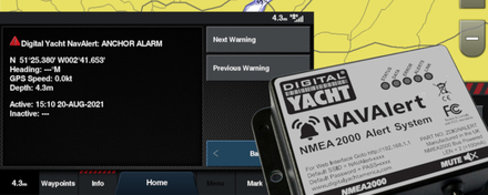 NAVAlert se connecte simplement sur le réseau NMEA 2000. Il donne la possibilité à l’utilisateur de définir des alarmes pour n’importe quelle variable d’un appareil connecté au réseau, par exemple, le sondeur (profondeur), la pompe de cale, le moteur (température, niveau, pression, carburant, etc.), les alarmes (homme à la mer, mouillage, collision …). L’interface utilisée est simple. L’utilisateur y a accès et peut le configurer à l’aide de n’importe quel smartphone, ordinateur ou tablette dotés d’un navigateur web. Il peut également transmettre l’alarme vers un écran multifonction (à ce jour Garmin) pour afficher une fenêtre d’alarme. Pour la surveillance à distance, il crée un message SMS qui sera envoyé via l’interface 4GXtream (digital Yacht) vers un téléphone portable. En option, on peut l’interfacer à NavChat de Digital Yacht (disponible premier trimestre 2023) pour une alerte orale.