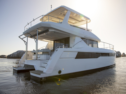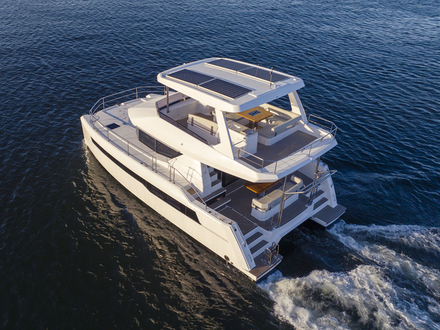 Dans les coques, les trois cabines bénéficient toutes d’island-beds aux dimensions généreuses et de la vue sur mer. Deux salles d’eau, en coursive sur bâbord et à l’avant sur tribord, proposent chacune un ensemble spacieux avec douche séparée. Rien ne vient troubler le confort des passagers car les deux zones techniques arrière sont totalement séparées, isolées, accessibles uniquement par l’extérieur. Elles accueillent deux moteurs de 250, 320 ou 370 CV, tous en ligne d’arbre pour garantir le niveau de fiabilité exceptionnelle cher à la marque. Promettant d’atteindre 17 nœuds en croisière et plus de 20 nœuds en pointe, Ils assureront une large autonomie à vitesse plus réduite, afin de satisfaire l’exigence des marins en quête de longues traversées.