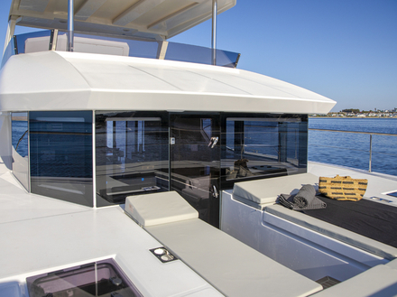 Avec ses lignes acérées au design très contemporain, le nouveau Leopard 40PC est immédiatement identifiable comme faisant partie de la nouvelle génération des catamarans à moteur Leopard. Comme ses aînés de 46 et 53 pieds, et tout comme la gamme voile, le vitrage latéral file tout le long du bordé. La casquette de roof aux lignes tendues permet d’intégrer avec élégance le plus grand flybridge jamais vu sur un 40 pieds. Elle protège également des rayons trop ardents du soleil, un roof tout en transparence qui offre une vue à 360° permettant de profiter pleinement du cadre offert par l’infinité de destinations possibles. À bord du Leopard 40PC, chaque espace de vie offre une expérience enrichie de la vie en mer.