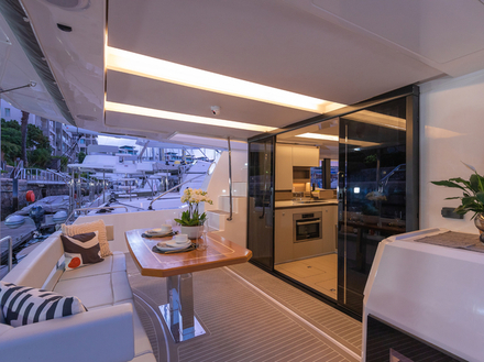 À l’extérieur les espaces sont multiples et ne manquent d’impressionner pour un quarante pieds : cockpit arrière, flybridge, plages arrière, bains de soleil accessibles par les passavants ou directement depuis le carré via la porte avant, une innovation Leopard présente sur tous nos modèles depuis 2010. Il y a toujours un endroit adapté, que ce soit pour un temps pour soi, au calme, ou pour de grands moments de convivialité.