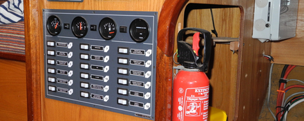 Pour vérifier l’éclairage, y compris les feux de navigation, il faut les allumer un par un. Il est bien rare, après un hivernage, qu’ils fonctionnent tous. L’une des causes la plus fréquente est une oxydation au niveau de l’ampoule, il suffit de la nettoyer avec un produit spécial contact. La deuxième est une ampoule grillée, il suffit de la changer. Pour la vérification des éclairages intérieurs et extérieurs, cela ne pose pas de difficultés, ils sont à portée de mains. C’est plus délicat pour les feux de navigation lorsqu’ils sont en tête de mât. Avant d’envisager de monter en tête de mât, il faut à l’aide d’un voltmètre, s’assurer que le feu est bien alimenté. La deuxième mesure est de tester la résistance de l’ampoule à l’aide d’un ohmmètre, elle doit être presque nulle. Si elle est importante (infinie), l’ampoule est grillée. Attention, cette mesure ne peut se faire que sur les ampoules standard à filament pas sur celles à LED.