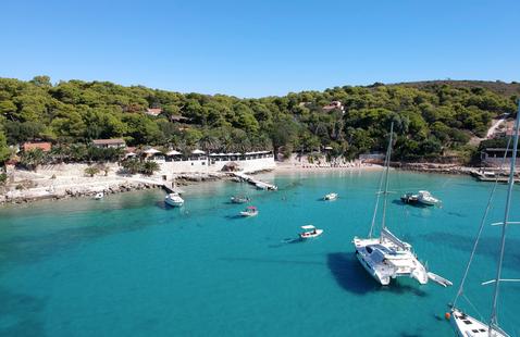 La sensation d’espace se confirme dans l’immense cockpit de plus de 3mètres, très dégagé autour de la table centrale. Au mouillage, l’accès à la mer est un must ! Une fois les sièges de barre relevés, le très large passage s’ouvre sur la plateforme surbaissée, gage de sécurité et d’agréables baignades.