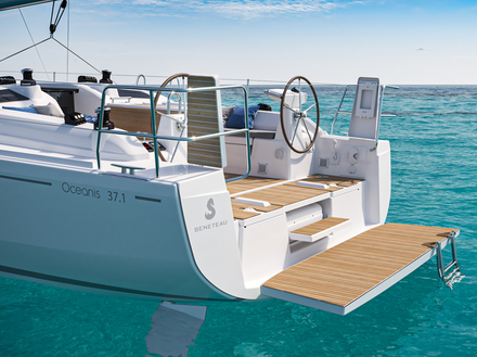 L’espace extérieur est très ouvert, et profite de l’absence de pataras, configuration adoptée avec succès sur les Oceanis 30.1 et 34.1. Le gréement poussant à deux étages (mât enrouleur en option) est généreux et promet à l’Oceanis 37.1 de jolies performances. En version standard avec foc auto-vireur, la priorité est donnée à la facilité, tandis que la version First Line avec grand-voile à corne et génois (22 % de surface en plus) ravira les plaisanciers amateurs de bateaux vivants. Pour rester maniable en équipage réduit, toutes les manoeuvres reviennent sur les deux winches de l’arrière. Seules les drisses restent concentrées autour du rouf. Une console de barre à tribord réunit tous les instruments, dont un traceur 7 pouces.