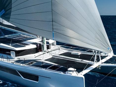 Taillé pour la navigation au long cours et les tours du monde à la voile, ce catamaran hauturier, performant et écoresponsable de 50 pieds arbore une allure définitivement racée.