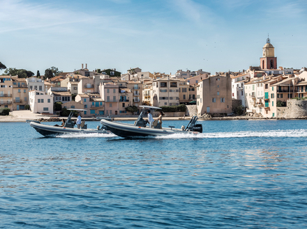 L’ADN de Highfield c’est d’abord des coques réalisées en aluminium avec un dessin de carène en V prononcé (26°) et des redans, aux qualités de passage en mer excellentes – la gamme Sport Med en bénéficie également. Elles sont plébiscitées par les marins de la course au large et les organisateurs du Vendée Globe ou de la Route du Rhum qui les utilisent comme semi-rigides d’assistance dans le cadre des départs ou des arrivées. Le sublime écrin du Golfe de Saint-Tropez nous a permis de découvrir cette nouvelle gamme, déclinée en une série limitée « Les Voiles de Saint-Tropez ». Nous avons essayé pour vous le modèle Sport Med 760.