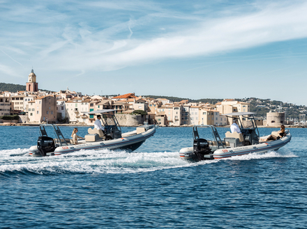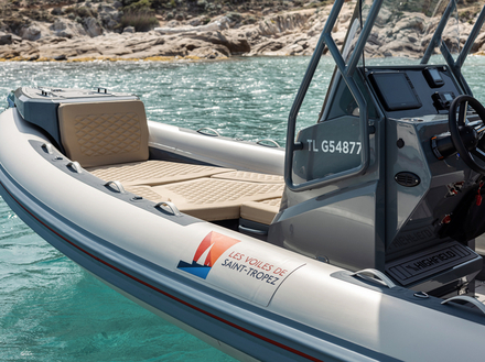 Les flotteurs sont réalisés par Orca en Hypalon, ce choix garantit une durabilité, une résistance aux UV, et aux agressions extérieures (abrasion et pollution). La série limitée « Les Voiles de Saint-Tropez » se décline sobrement avec des flotteurs couleur ivoire et des bandes rouges décoratives associés à l’élégant logo de la course éponyme.